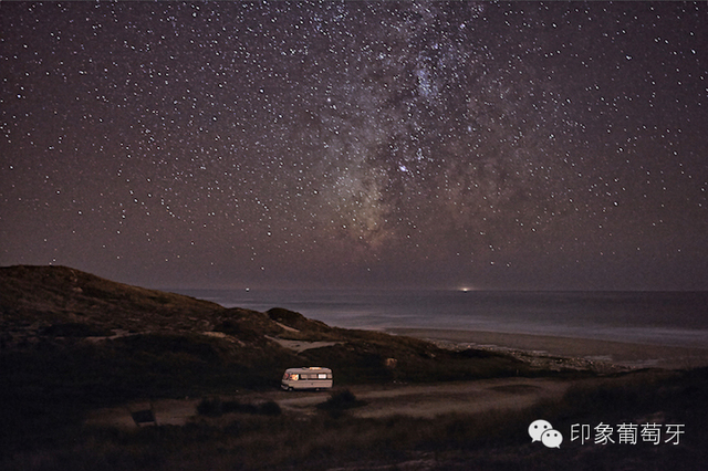 在睡觉前,摄影师将他的房车放置在壮丽的海岸边,背对着汹涌黑暗的海面,与数千万繁星,拍下这些美丽的照片。